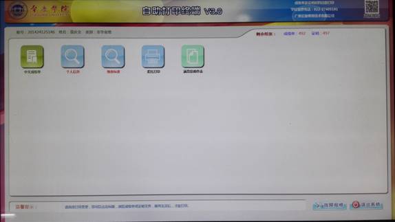 点击“上一页”“下一页”查看内容,当页面无显示时点击“刷新”按钮,点击“打印”按钮,打印文件,当免费份数为0时,需刷卡缴费后才能打印。