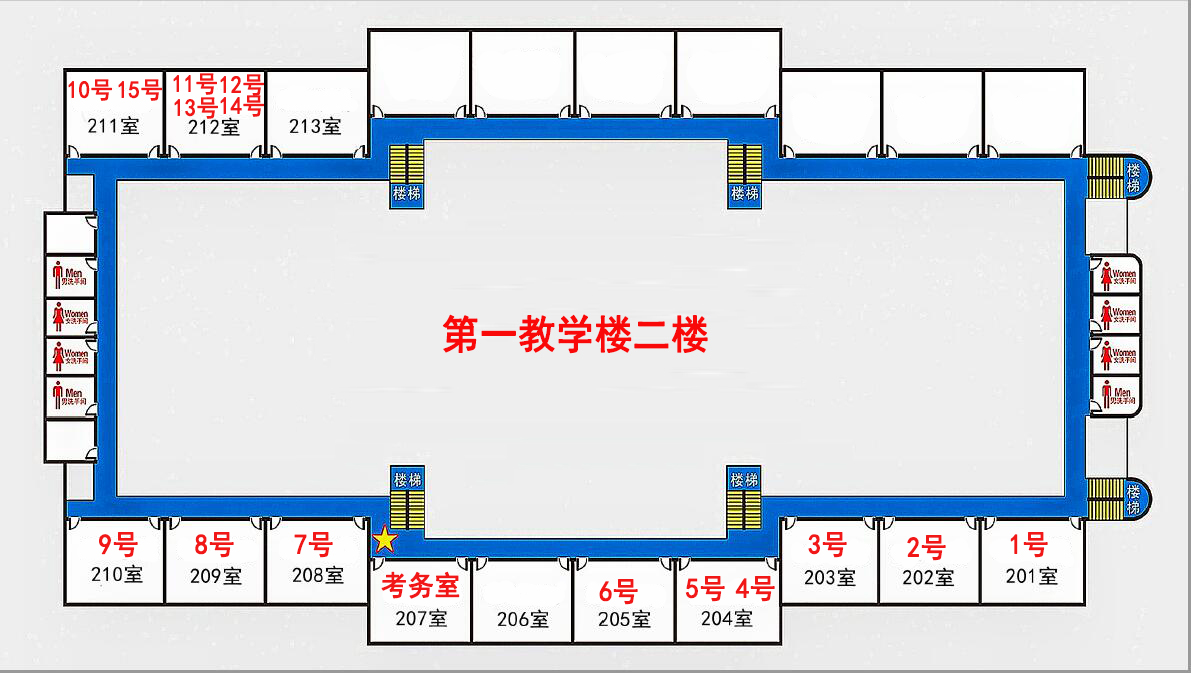 考场号 11、12、13、14(考试地点:第一教学楼212室)