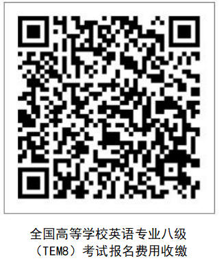 符合条件报名的考生(含已毕业考生)请使用微信扫描下方“全国高等学校英语专业四、八级考试报名缴费二维码”线上缴纳费用,缴纳费用时,请认真填写个人报名信息(学号、姓名、身份证号、联系电话、备注),最终报名确认表以缴费时填写的报名信息为准,若填写有误,造成不能正常考试或其他异常情况者,责任自负。