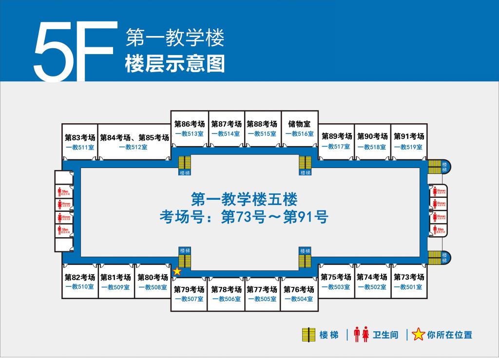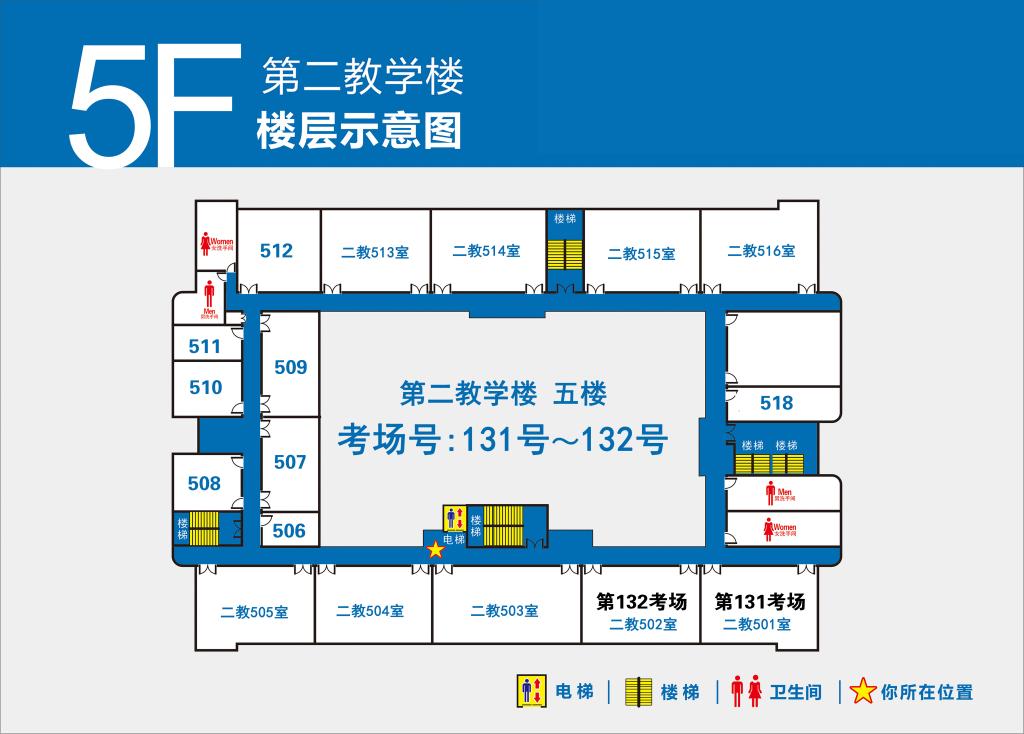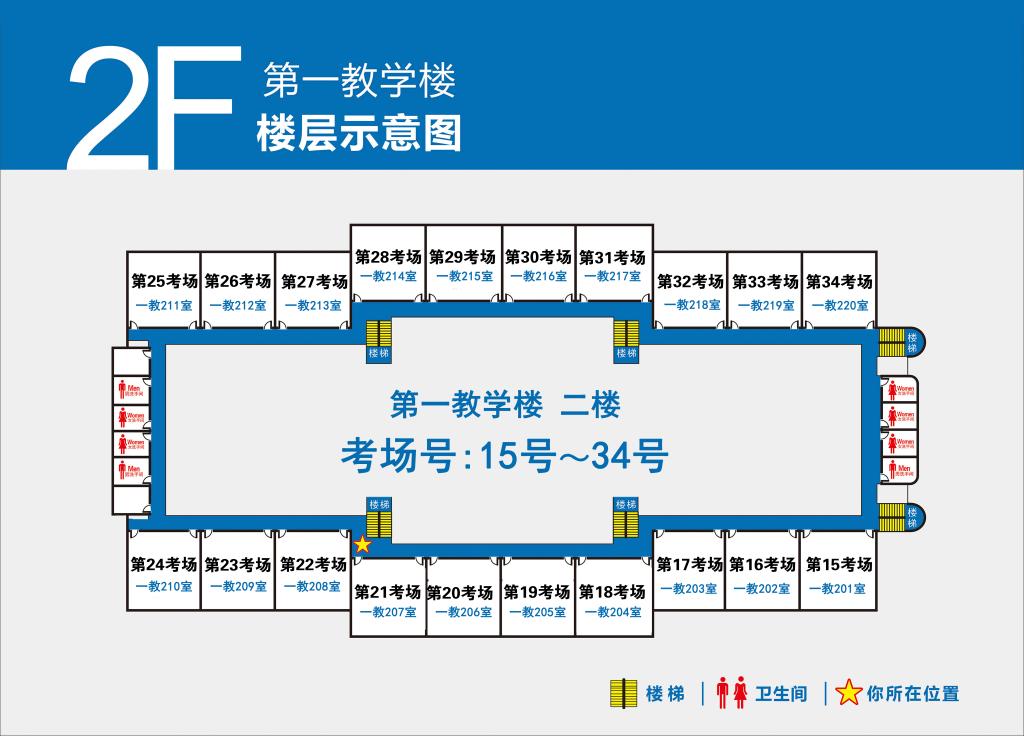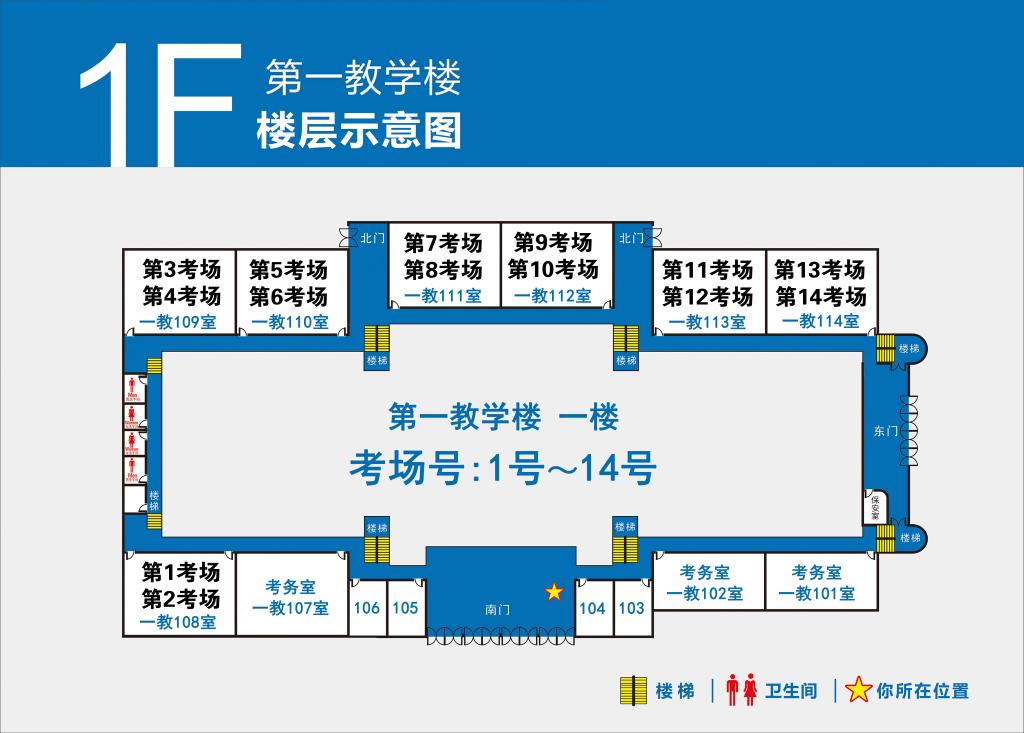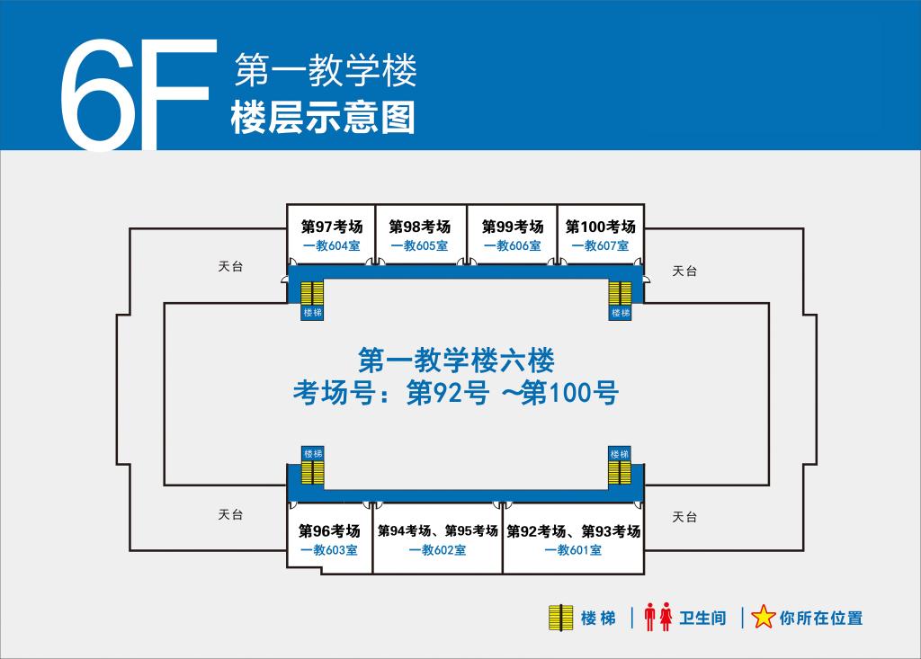 4.第1-100号考场设在第一教学楼(点击查看),101-132号考场设在第二教学楼(点击查看)。