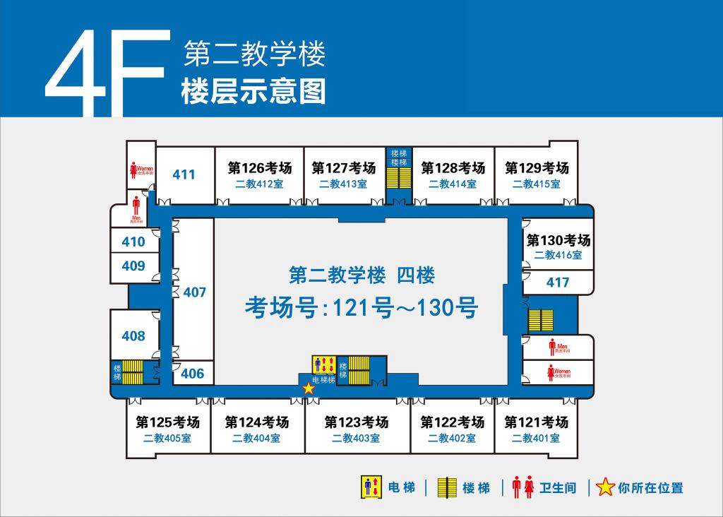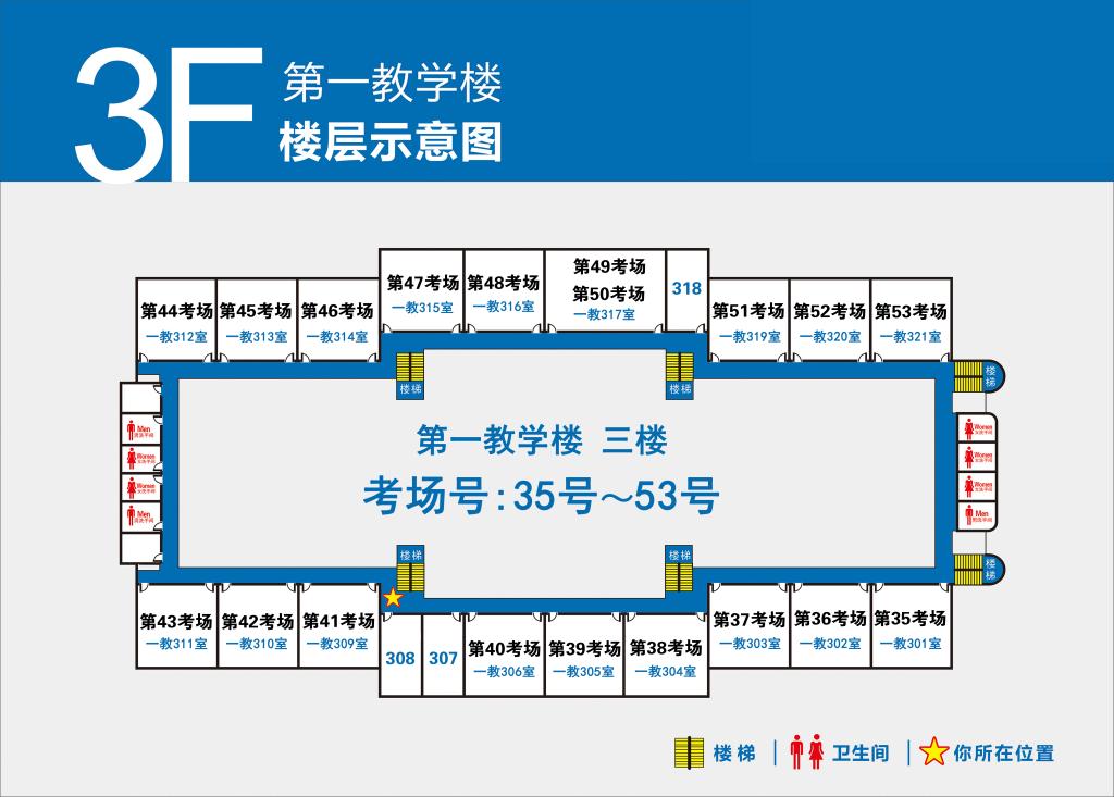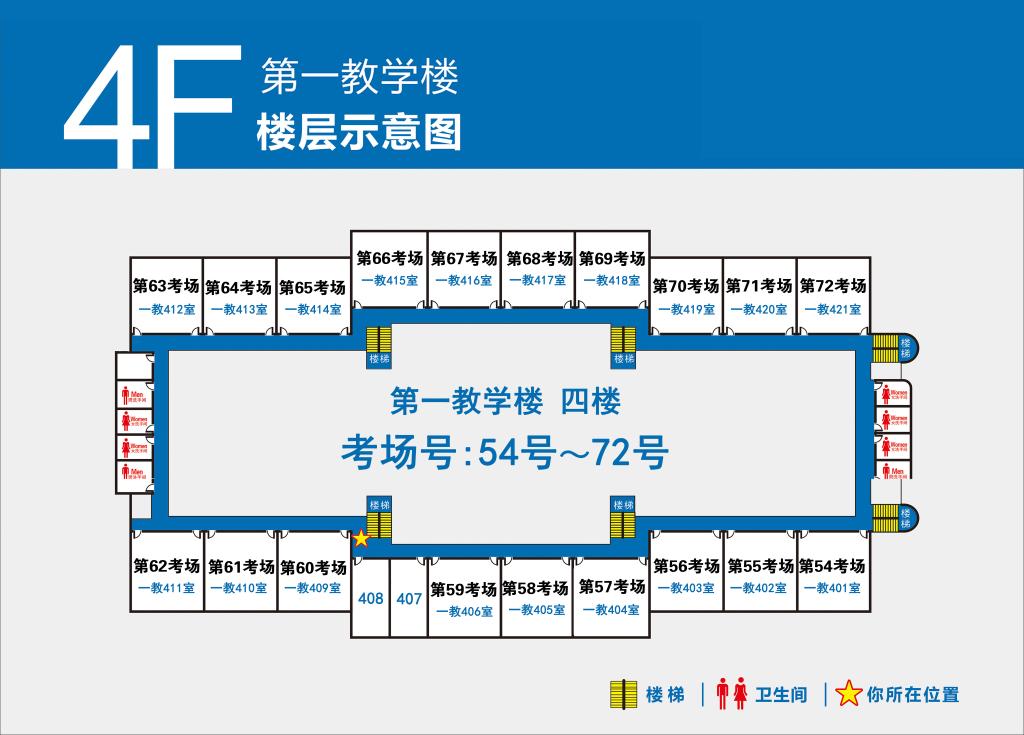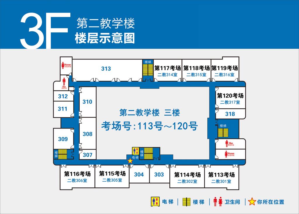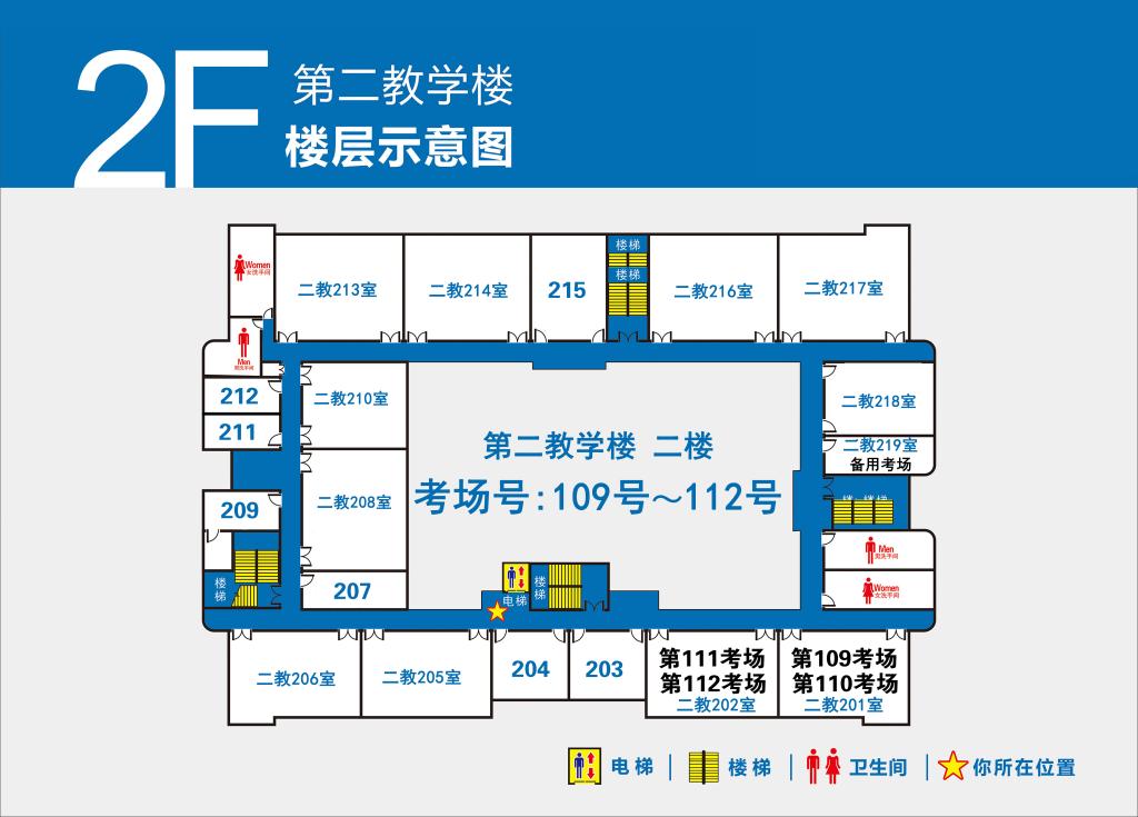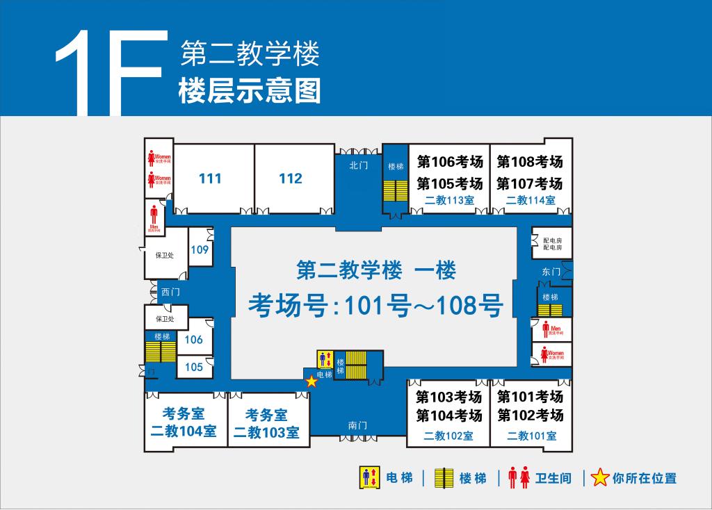 4.第1-100号考场设在第一教学楼(点击查看),101-132号考场设在第二教学楼(点击查看)。