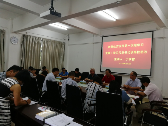 2019年6月12日下午4:30,教务处党支部在第四会议室召开“第一议题”学习习近平总书记谈高校思政学习会。