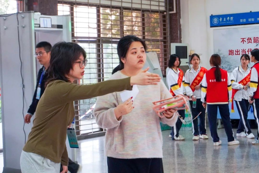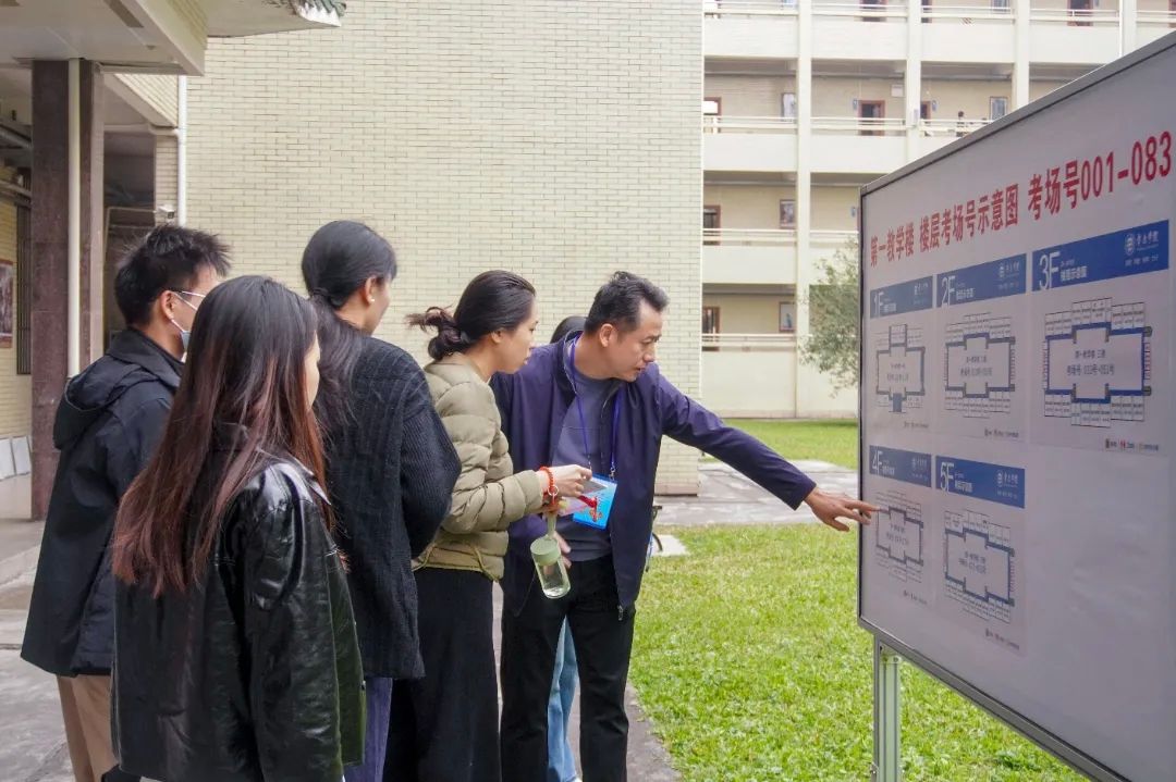 胡文涛副校长带领教务部和研究生院全体工作人员严格按照考试规程和学校领导的指示要求,协同各部门认真组织考试。整个考试过程平稳有序,未发生试卷泄密、替考作弊等安全事故与突发事件,充分展现了学校严谨规范的组考能力和学子诚信应考的精神风貌。在确保考试安全公平的同时,学校坚持以生为本,全力做好考生服务保障。考场外设置醒目标识与引导岗,学生志愿者热情提供路线指引;志愿服务点免费供应热水、姜糖茶等暖心物资;考试间隙开放体育馆作为考生休息区,营造温暖、安静的候考环境。一系列人性化举措,体现了学校的育人温度,赢得了广大考生的好评。