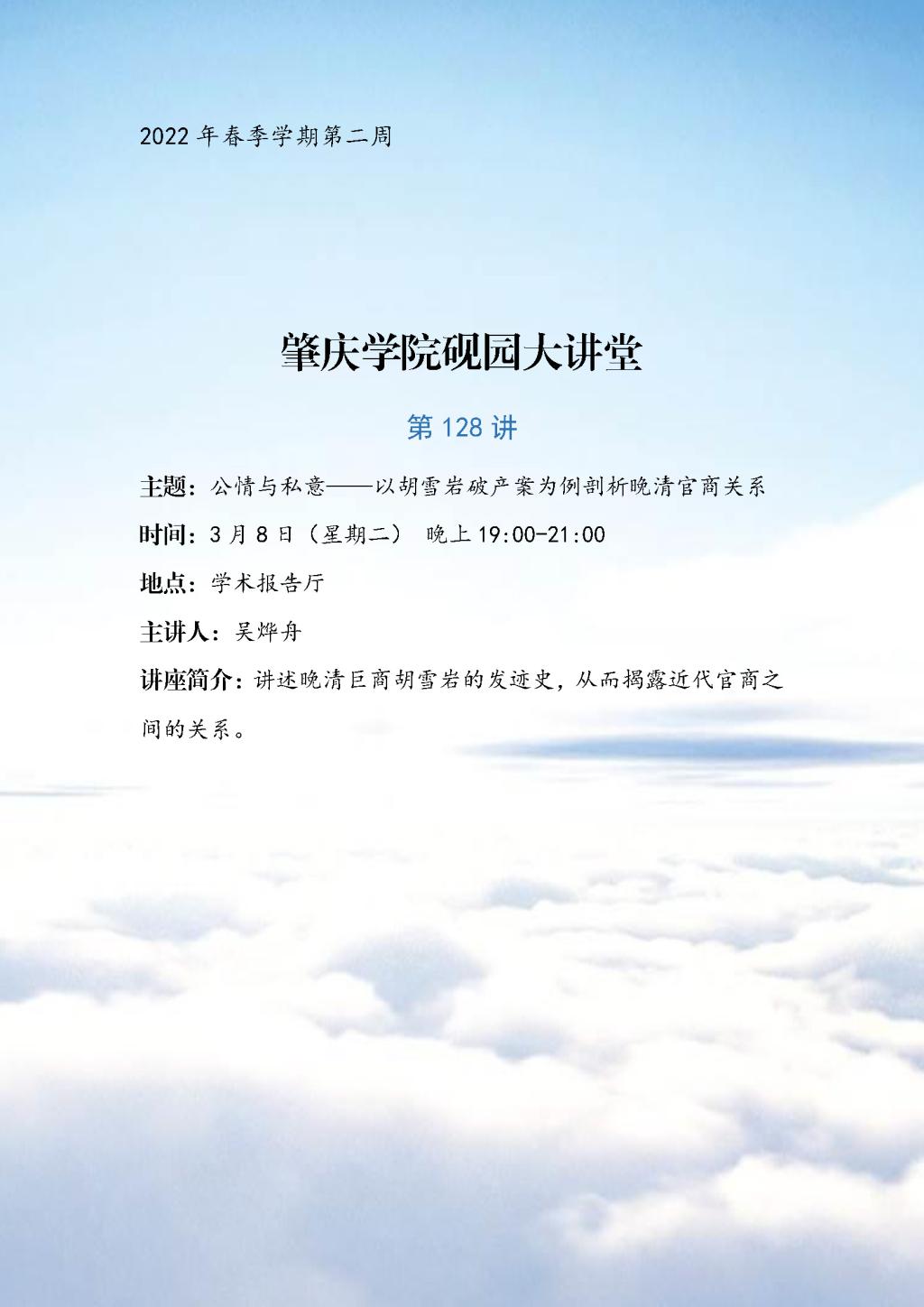 第128讲(3月8日)公情与私意——以胡雪岩破产案为例剖析晚清官商关系