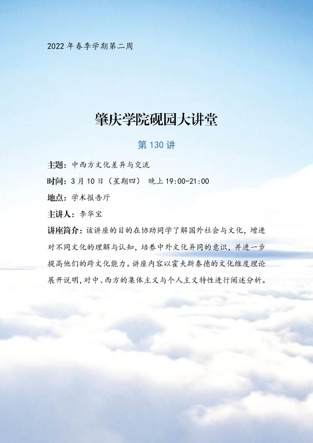 第130讲(3月10日)中西方文化差异与交流