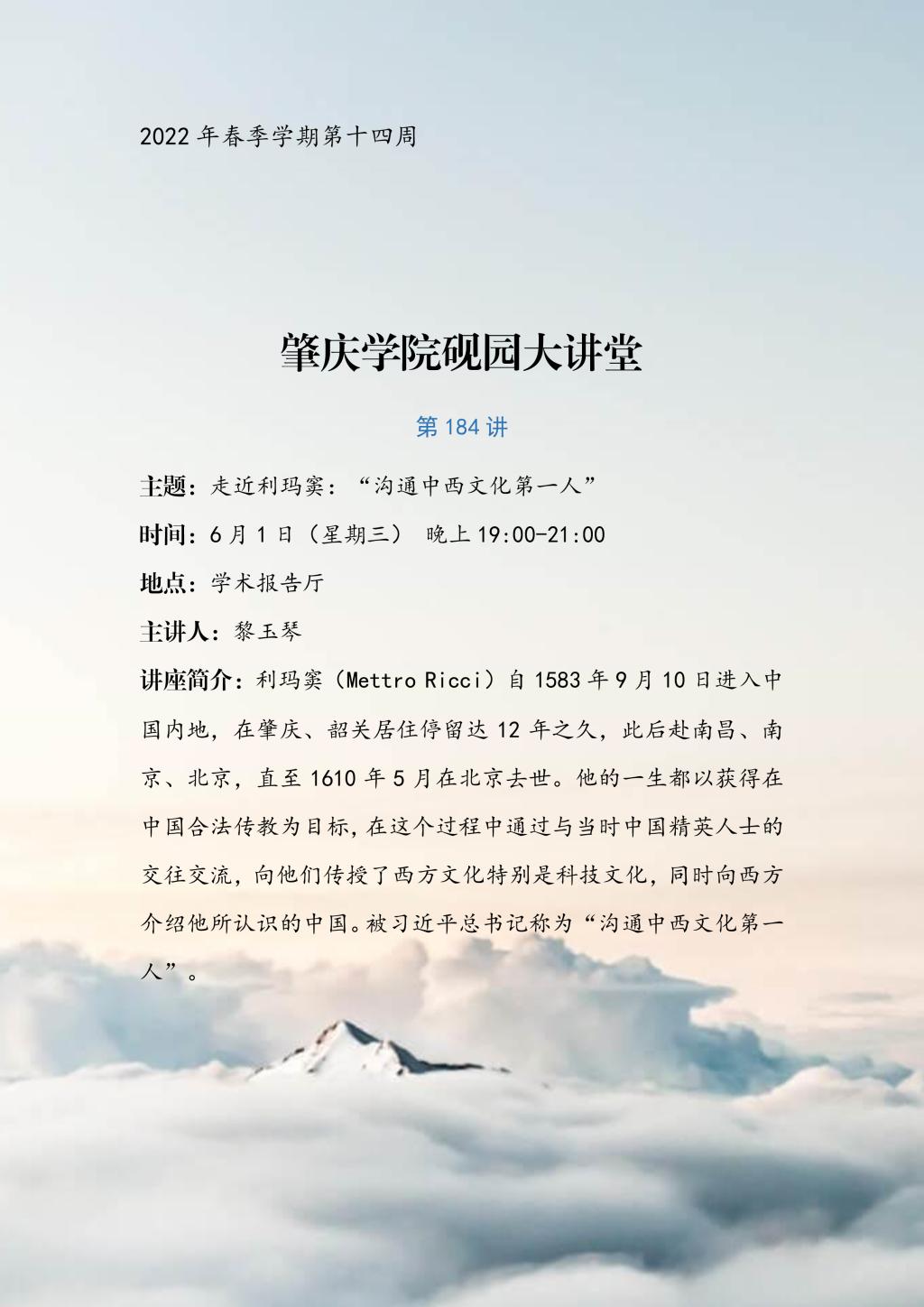 第184讲(6月1日)走进利玛窦:“沟通中西文化第一人”