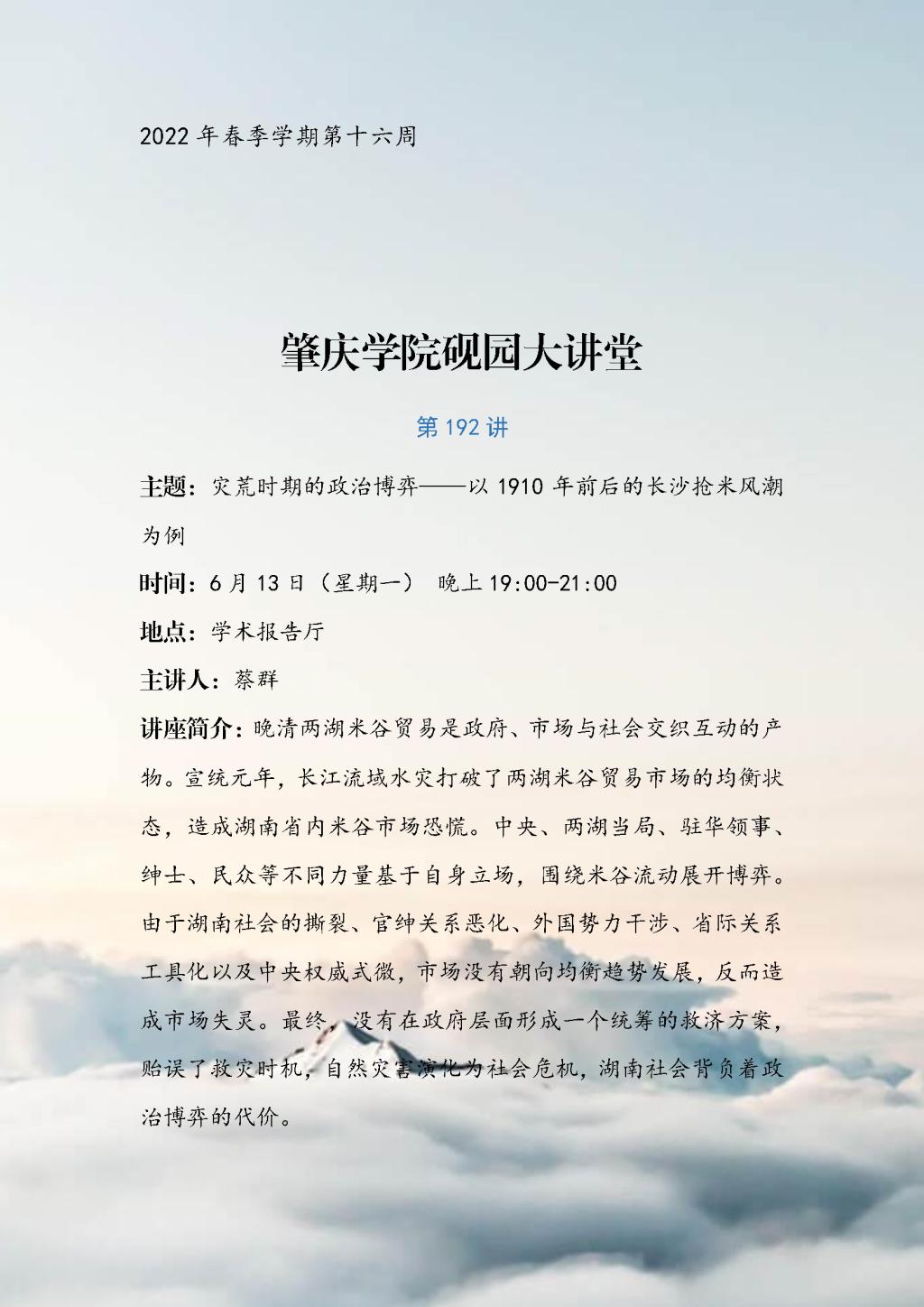第192讲(6月13日)灾荒时期的政治博弈——以1910年前后的长沙抢米风潮为例